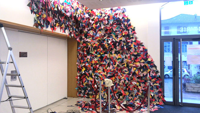 Instalación Artística realizada en el hall del Ayuntamiento de Saint Pée, Francia, con motivo del 25N.