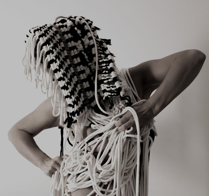 Trabajo de Arte Textil y Fotografía Artística. Compuesto por una obra realizada en cuerda de algodón y lino mediante la técnica del anudado del macramé.